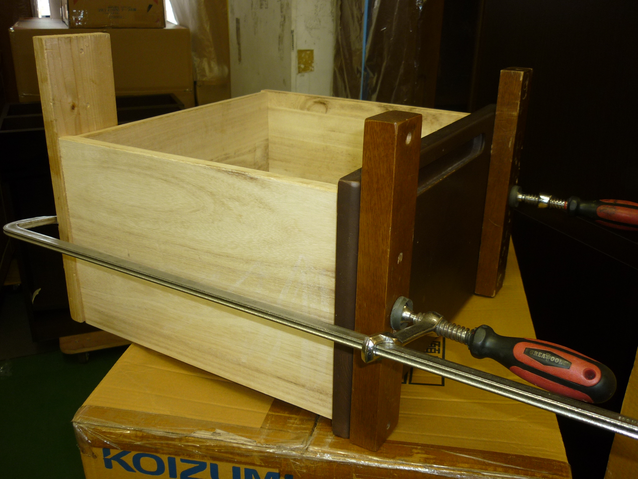2012年に購入していただいたチェストの引き出しの前板が外れてしまったとのことで、お客様が直接店舗にお持ち込みしてくださいました。
