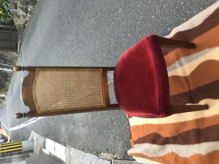 コスガのダイニングチェアの籐製の背が破れた為、張替えをご希望でした。 写真の様に背の中央部