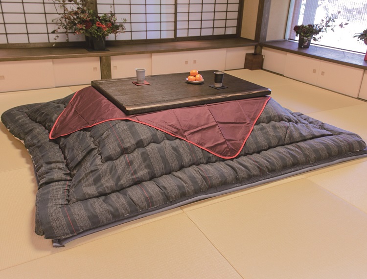普段は座卓として、冬は布団を覆せて、こたつとして1年中使用できます。天然素材で人に優しい家具です。