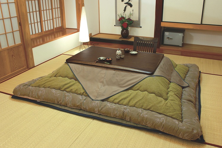 普段は座卓として、冬は布団を覆せて、こたつとして1年中使用できます。天然素材で人に優しい家具です。